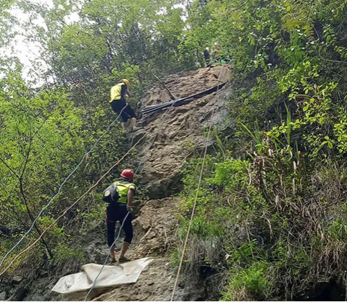 速降過后,進入溶洞探險,這是一項勇者的運動,穿行于錯綜復(fù)雜的神秘地下世界,是對體力、耐力、技術(shù)和心理素質(zhì)的極大考驗,隊員們打開各自手電筒,相互協(xié)助,沿著溪水,往深黑的洞慢慢探索。
