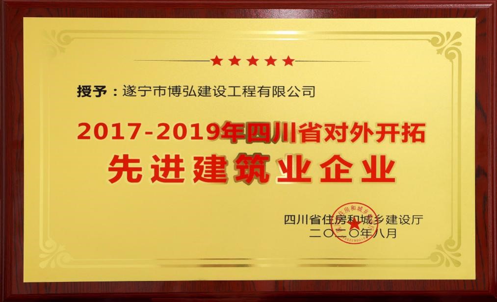 ——博弘建設榮膺“2017-2019年四川省對外開拓先進建筑業(yè)企業(yè)”2020年11月10日,由四川省及各城市住房城鄉(xiāng)建設廳舉辦的全省建筑業(yè)企業(yè)“走出去”發(fā)展工作會在成都市隆重召開。會議邀請了來自我省百余家建筑業(yè)企業(yè)、100名企業(yè)經理以及200名項目經理參加。遂寧市博弘建設工程有限公司(以下簡稱“博弘建設”)經過綜合評審...